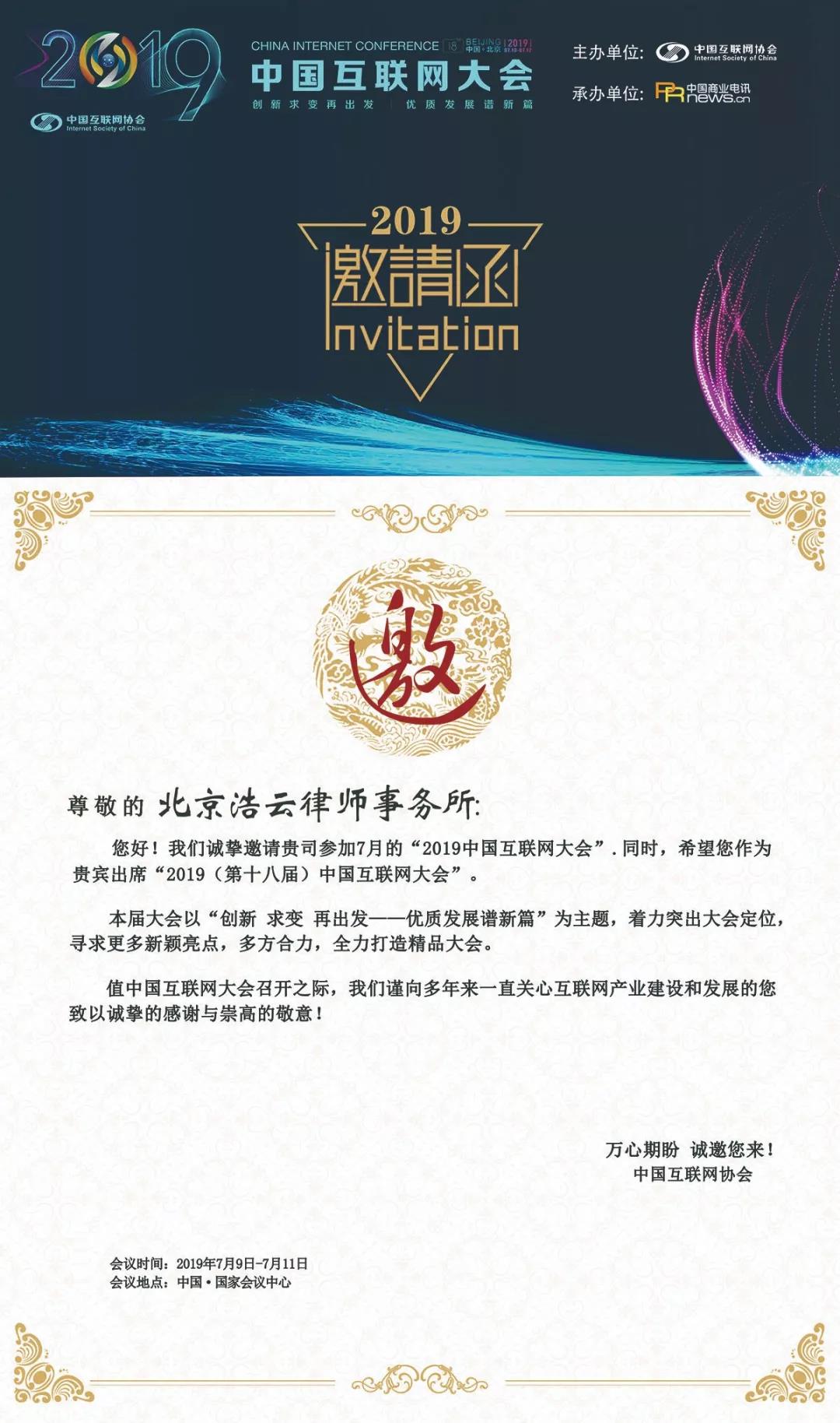 北京浩云律師事務所受邀出席2019第18屆中國互聯(lián)網(wǎng)大會